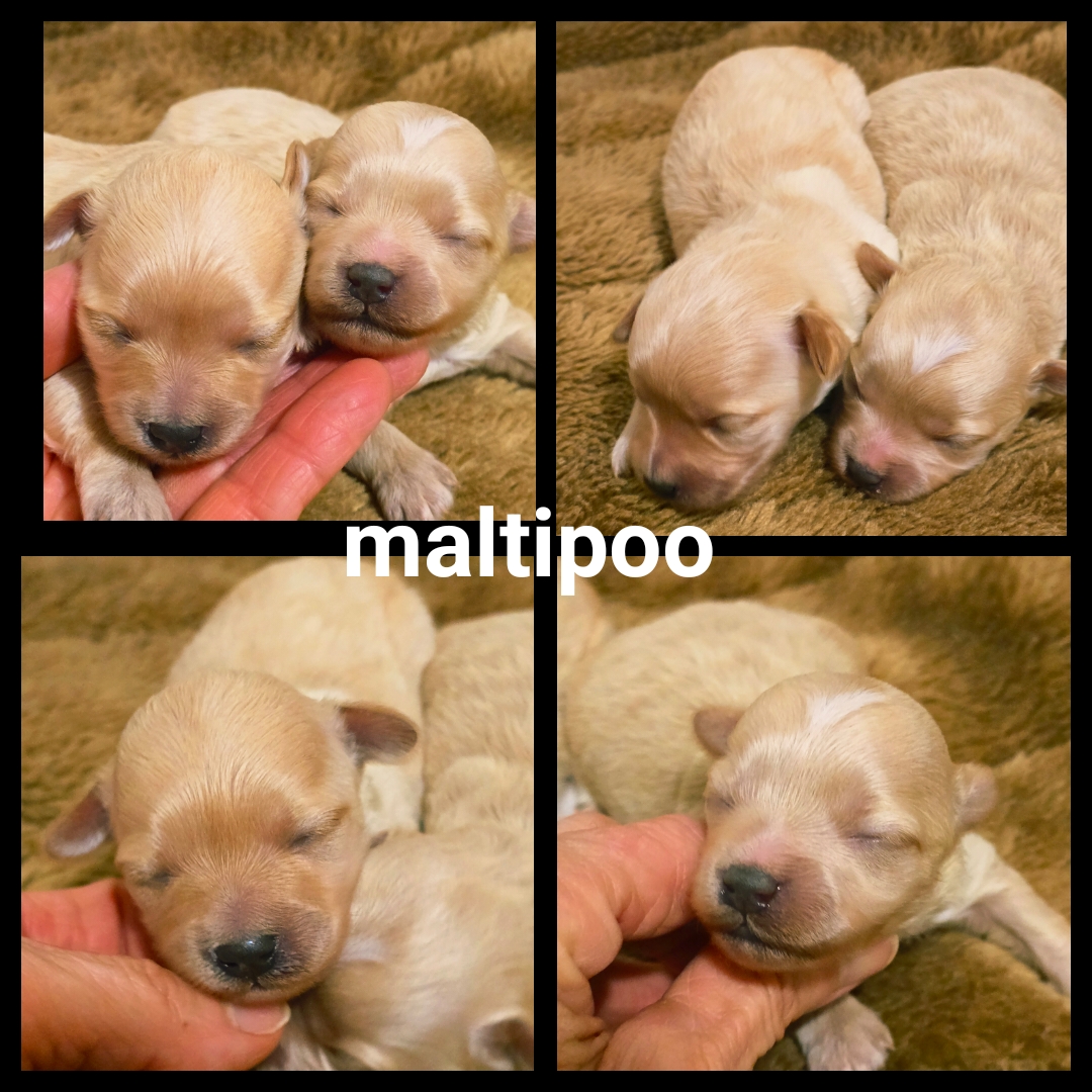 Nouvelle portée de chiots Maltipoo (croisement entre Bichon maltais et Caniche miniature). Ce sont des chiots hypoallergènes qui ne perdent pas de poils. Prêts à partir vers la mi-février. Poids adulte : environ 6 à 9 livres. Chiots intelligents, enjoués, affectueux et faciles à éduquer.